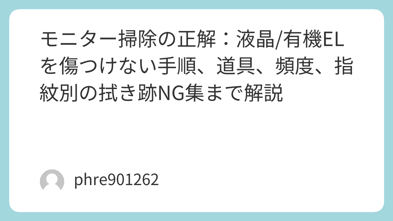 掃除の頻度は、週1でホコリを軽く、月1で指紋が気になるところだけ湿式、これくらいが続く。理由は頻度を上げても画質が上がるわけじゃないし、触る回数が増えるほど事故の芽も増えるから。補足として、デスクでハンドクリームを塗った直後にベゼルを触る癖があるなら、そこを直したほうが掃除より効く。