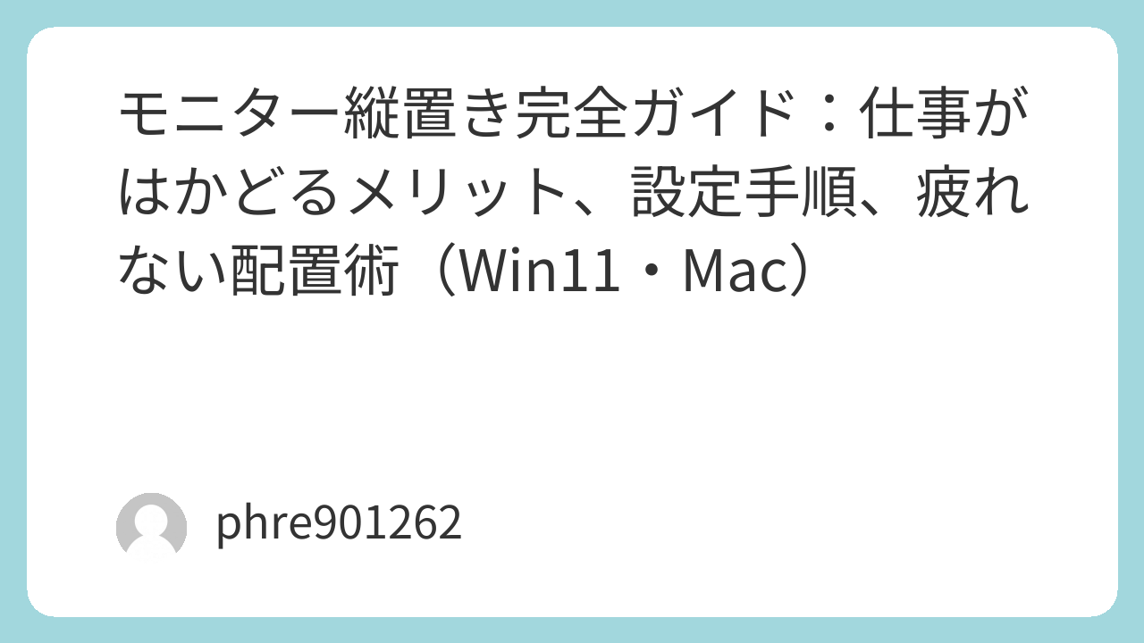 最後に、いちばんおすすめの運用。結論は「メイン横+サブ縦」。理由は、横が得意な作業(表計算、画像編集、動画、ゲーム)を守りつつ、縦が得意な作業(文章、資料、チャット、コード)だけを縦に寄せられるから。サブ縦は、ブラウザ固定、チャット固定、PDF固定など役割を一つ決めると強い。気分で用途を変えると、結局また迷子になる。