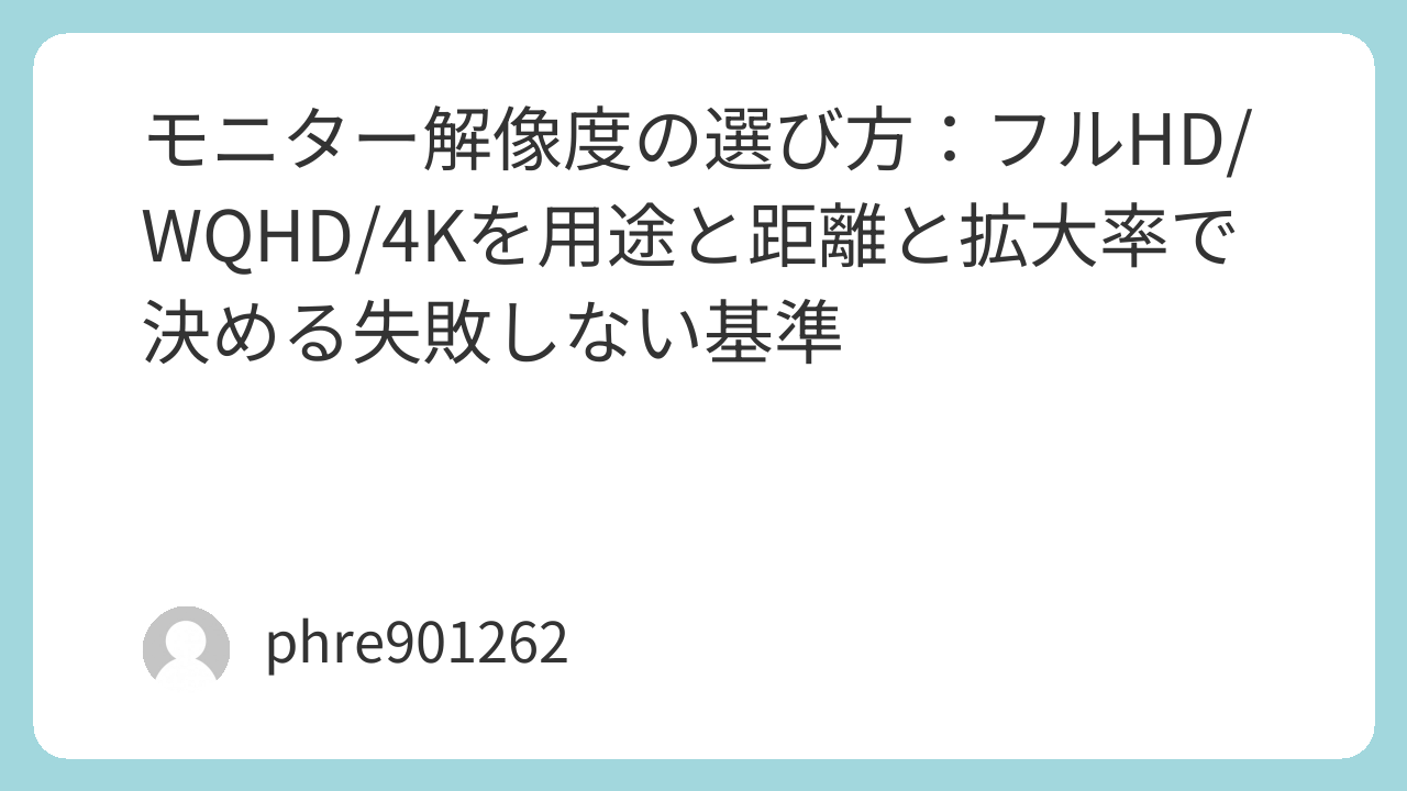 解像度選びは、見栄じゃなく相性です。フルHDで快適ならそれが正解だし、WQHDが刺さる人は毎日じわっと得をします。4Kは調整込みでハマれば最高。自分の距離と目と使い方に合わせて、勝てる解像度を選びましょう。