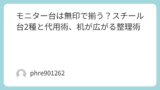 迷ったら、モニターの位置を自由にできる モニターアーム ガススプリング 27-34インチ(https://www.amazon.co.jp/s?k=%E3%83%A2%E3%83%8B%E3%82%BF%E3%83%BC%E3%82%A2%E3%83%BC%E3%83%A0%20%E3%82%AC%E3%82%B9%E3%82%B9%E3%83%97%E3%83%AA%E3%83%B3%E3%82%B0%2027-34%E3%82%A4%E3%83%B3%E3%83%81&tag=opason-22)が手っ取り早い。デスクに穴を開けたくないなら、まず モニター台(デスク上)(https://www.amazon.co.jp/s?k=%E3%83%A2%E3%83%8B%E3%82%BF%E3%83%BC%E5%8F%B0%EF%BC%88%E3%83%87%E3%82%B9%E3%82%AF%E4%B8%8A%EF%BC%89&tag=opason-22)で高さを作るのもありです。配線が散らかると気が散るので、最後に ケーブルクリップ 配線整理(https://www.amazon.co.jp/s?k=%E3%82%B1%E3%83%BC%E3%83%96%E3%83%AB%E3%82%AF%E3%83%AA%E3%83%83%E3%83%97%20%E9%85%8D%E7%B7%9A%E6%95%B4%E7%90%86&tag=opason-22)でまとめると、地味に集中力が上がります。