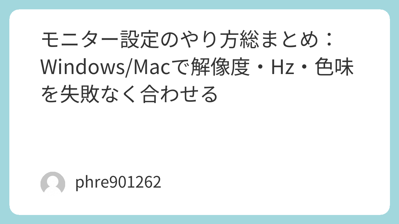 モニターの設定って、触り始めると沼。明るさを変えたら白が飛んで、Hzを上げたら選べる解像度が減って、HDRを入れたら急に白っぽい。こういう「なんか変」を最短で潰すには、順番を固定するのがいちばん効きます。配線→モニター本体→OSの表示→Hz→色→用途別、これでほぼ決まります。
