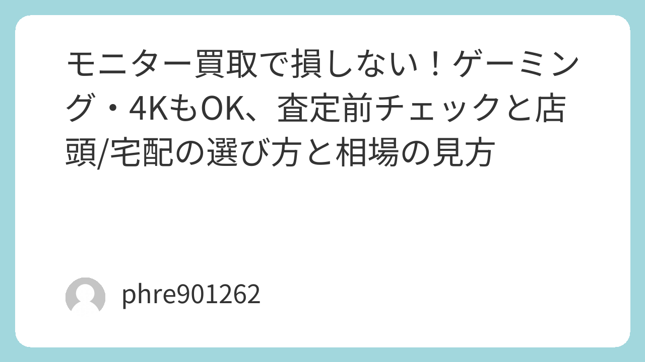 補足:箱なし宅配だけは梱包で結果が変わるので、https://www.amazon.co.jp/s?k=%E3%83%A2%E3%83%8B%E3%82%BF%E3%83%BC%20%E6%A2%B1%E5%8C%85%20%E3%83%80%E3%83%B3%E3%83%9C%E3%83%BC%E3%83%AB&tag=opason-22 と https://www.amazon.co.jp/s?k=%E3%83%97%E3%83%81%E3%83%97%E3%83%81%20%E7%B7%A9%E8%A1%9D%E6%9D%90%20%E3%82%A8%E3%82%A2%E3%82%AD%E3%83%A3%E3%83%83%E3%83%97&tag=opason-22 だけでも押さえておくと安心感が違う。ここまでやれば、買取はだいぶラクになる。
