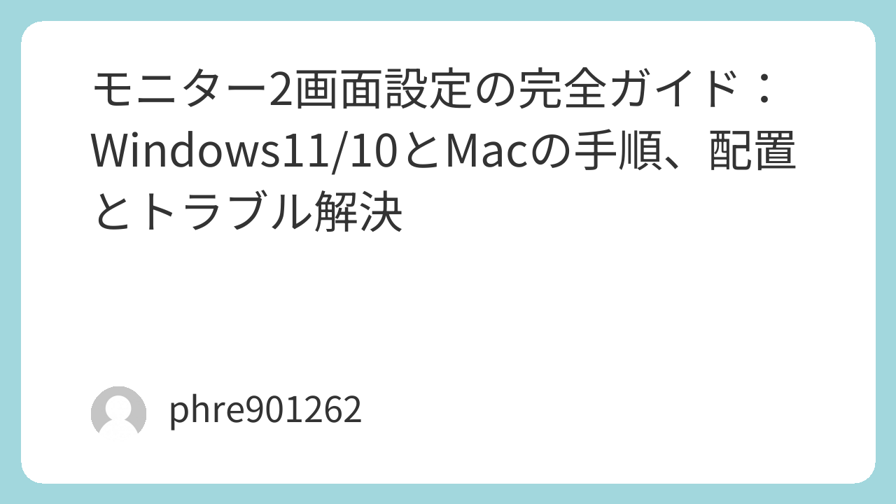 モニター2画面設定の完全ガイド:Windows11/10とMacの手順、配置とトラブル解決