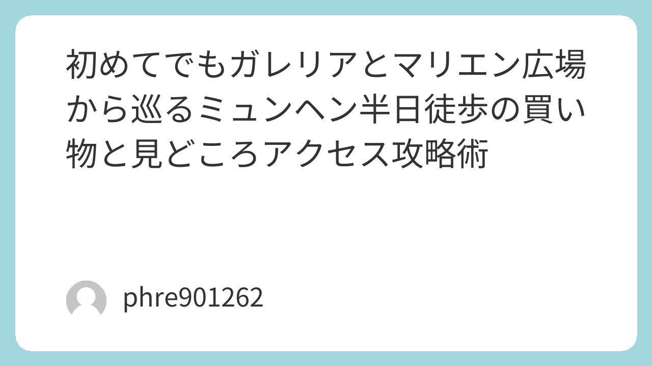 マリエン広場は“戻れる場所”として強く、GALERIAは“立て直せる場所”として頼れる。この2点を押さえるだけで、ミュンヘン散策は驚くほど滑らかになるはずだ。