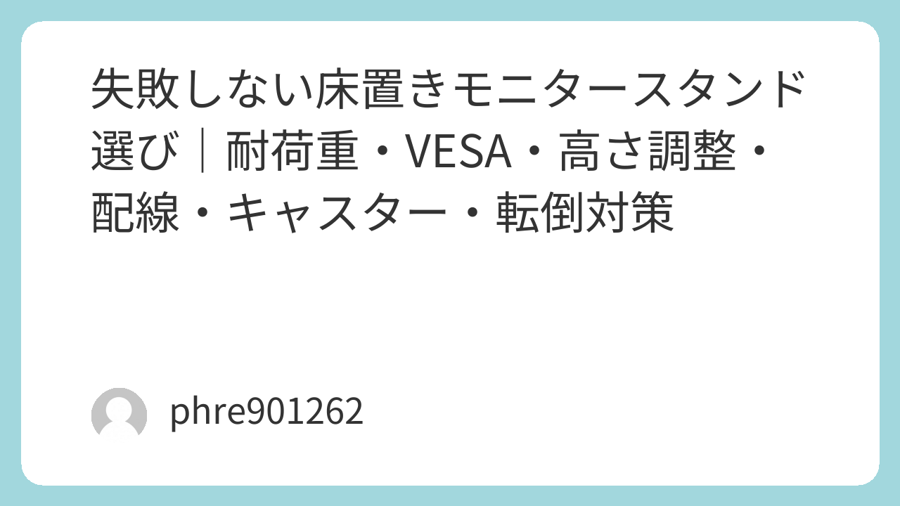 失敗しない床置きモニタースタンド選び|耐荷重・VESA・高さ調整・配線・キャスター・転倒対策