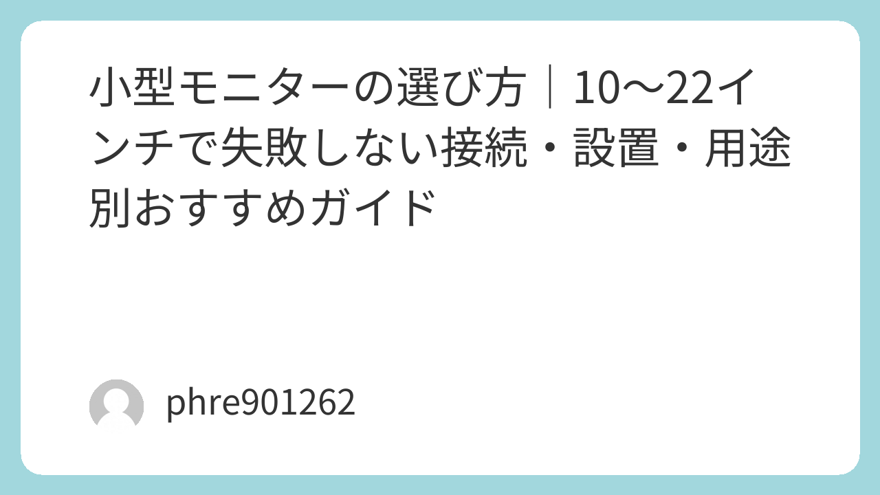 小型モニターは、スペック表を眺めるより“使う場面を一度シミュレーションする”ほうが当たる。机のどこに置くか、外でどのケーブルを持つか、電源をどうするか。そこが決まった瞬間、選ぶべきサイズとモデルが自然に絞れてくる。