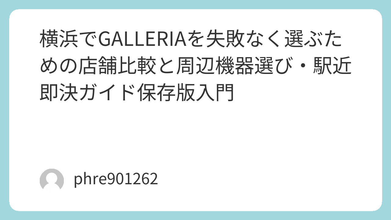 横浜でGALLERIAを失敗なく選ぶための店舗比較と周辺機器選び・駅近即決ガイド保存版入門
