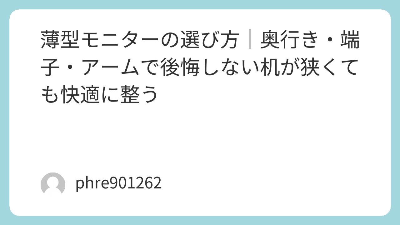 「薄型モニターがほしい」と思ったとき、まず結論から言うと“厚さ”より“奥行き”と“端子の逃げ”で勝負が決まる。理由は単純で、本体がいくら薄くても、スタンドの脚が前に出ていたり、背面端子に刺したケーブルが壁に当たったりすると、結局モニターが前へせり出して机が狭くなるから。ここを先に押さえると、買ってからの後悔が激減する。