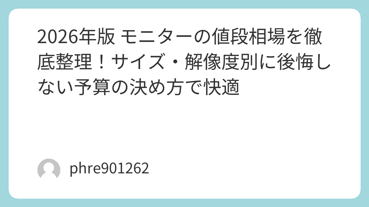 2026年版 モニターの値段相場を徹底整理!サイズ・解像度別に後悔しない予算の決め方で快適