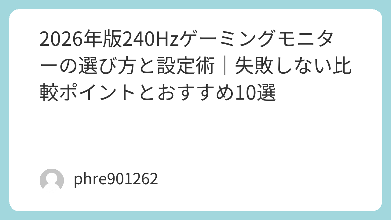 2026年版240Hzゲーミングモニターの選び方と設定術|失敗しない比較ポイントとおすすめ10選