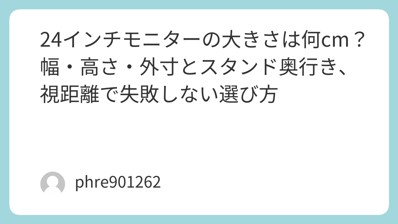 24インチは「対角線約61cm」で、横幅は体感で53cm前後。ここまではイメージの話。最後に決め手になるのは、スタンド込みの外寸と奥行き、そして40cm以上の視距離が作れるか。これさえ押さえれば、24インチはかなり失敗しづらいサイズになる。机の条件が厳しいなら、アームや配線整理で“距離を取り戻す”ほうが早い。ここまでセットで考えると、買ってからのモヤモヤが消えていく。
