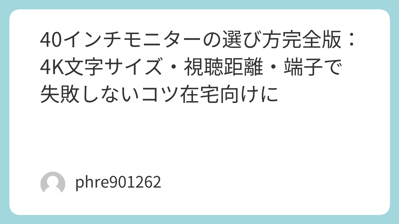 40インチは、ただ大きいだけじゃありません。整うと、作業が静かに速くなる。逆に合わない条件で置くと、疲れが積み上がる。距離・文字・端子。この3つを最初に押さえて、自分の環境に合わせて仕上げる。それだけで“当たり”になりやすいです。