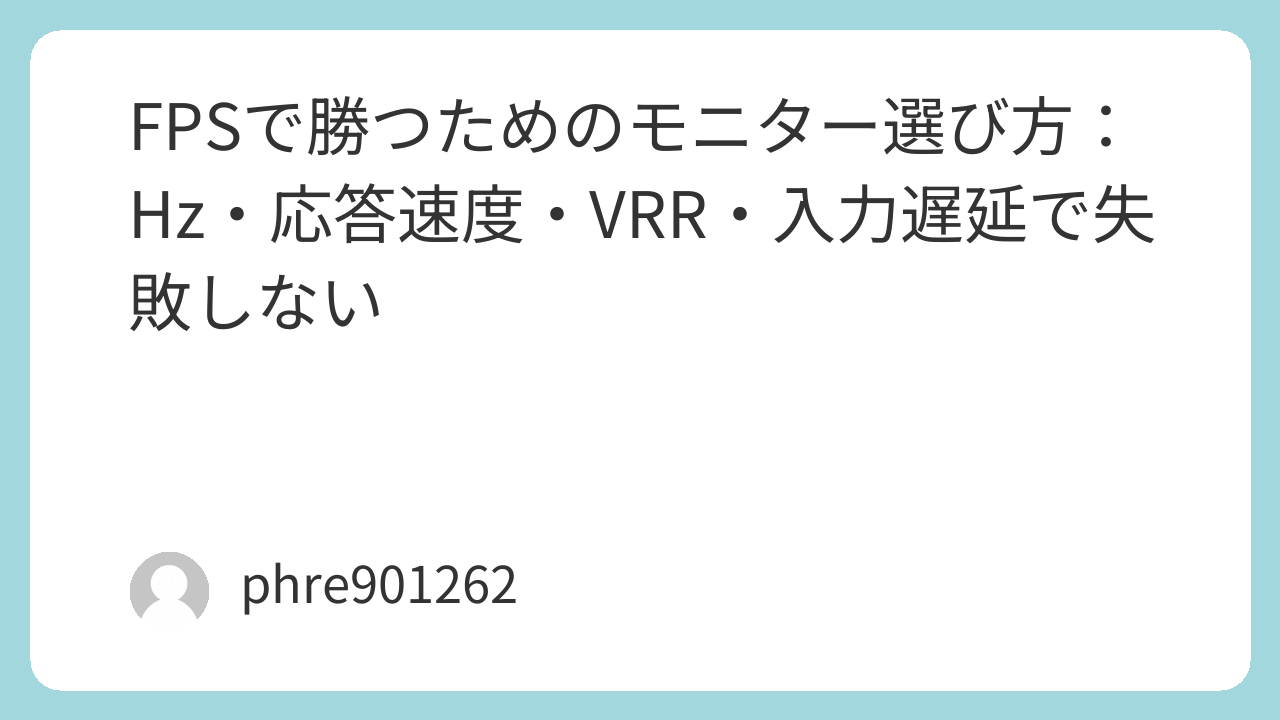 FPS向けモニター選びは、派手なスペック表より「自分の環境で安定して出せるfps」と「残像が少ない設定」を揃えるほうが結果に直結する。Hzを上げ、余計な処理を切り、VRRで揺れを抑える。ここまでやって初めて、エイム練習の手応えが画面に返ってくる。ゲームが上達していく感覚を、モニターが邪魔しない状態にしておく。それが一番コスパのいい投資だった。