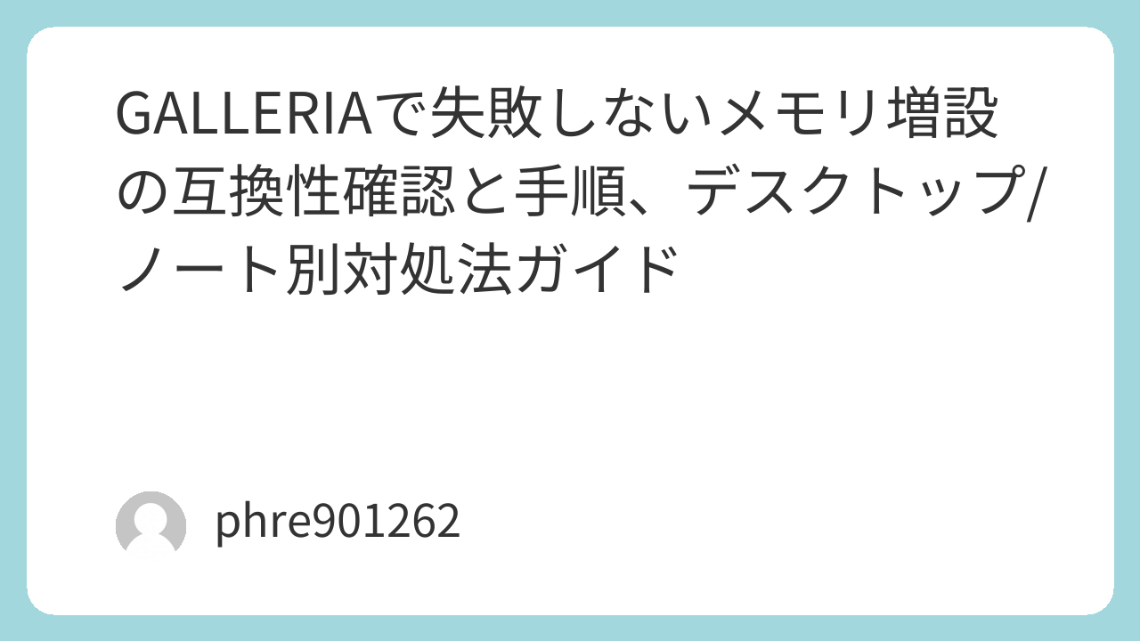 GALLERIAで失敗しないメモリ増設の互換性確認と手順、デスクトップ/ノート別対処法ガイド