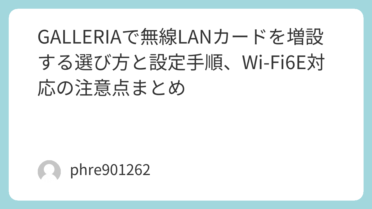 GALLERIAで無線LANカードを増設する選び方と設定手順、Wi-Fi6E対応の注意点まとめ