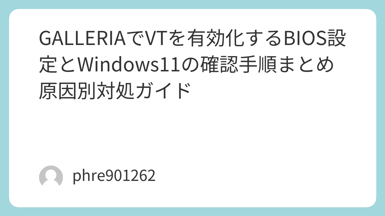 GALLERIAでVTを有効化するBIOS設定とWindows11の確認手順まとめ原因別対処ガイド
