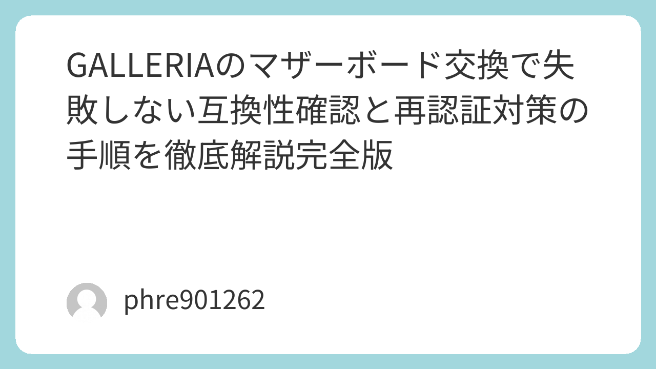 マザーボード交換は怖そうに見えるが、やること自体は「互換性を固める」「最小構成で起動確認」「起動後に整備」の3段で整理できる。準備を怠らなければ、GALLERIAはまだまだ延命できるし、むしろ今の用途に合わせて“自分仕様”へ寄せられるはずだ。