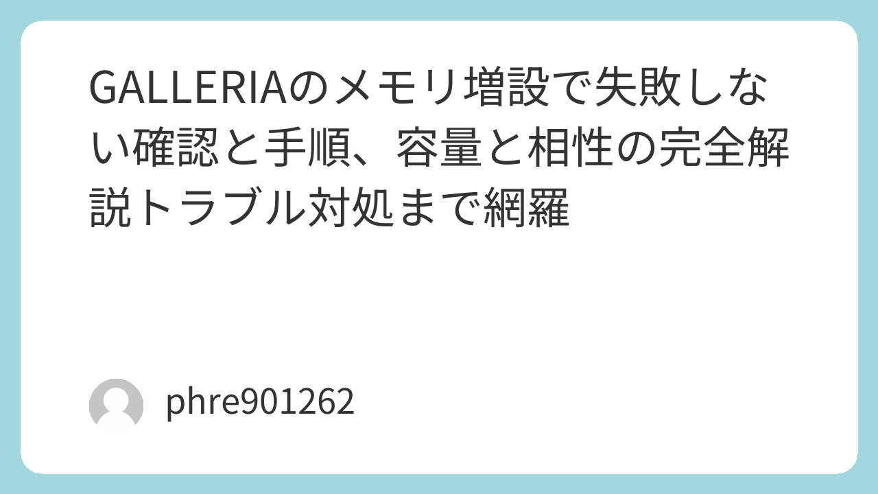 メモリ増設は、手順を守れば難しくありません。確認→互換性→容量→作業の順に進め、あなたのGALLERIAを“使っていて気持ちいい”状態へ持っていきましょう。