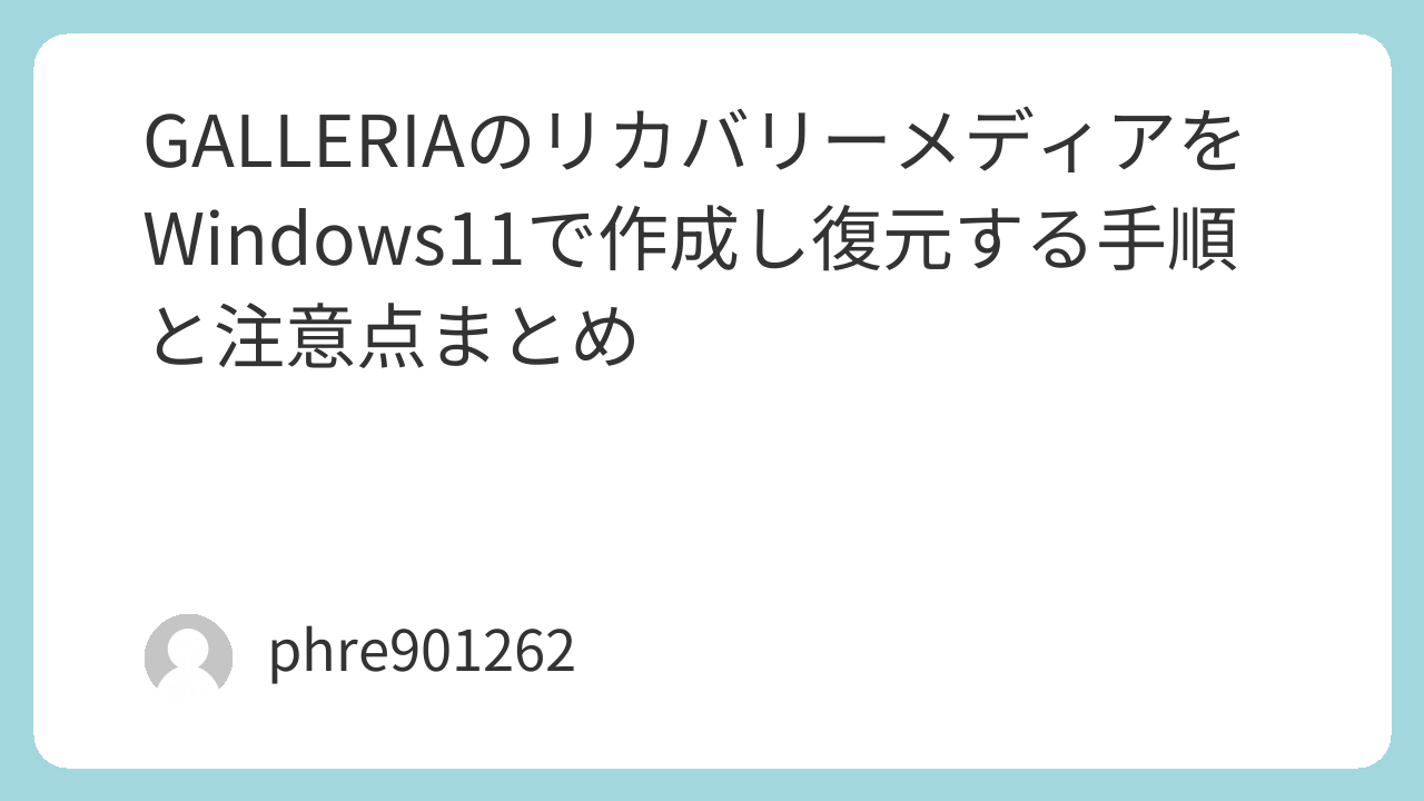 GALLERIAで「リカバリーメディア」を探している人の多くは、突然の起動不良や初期化の必要に迫られている。結論から言うと、やるべきことはシンプルで、①データ退避(できるなら最優先)②リカバリーメディアの用意③USBから起動して復元、の順番を崩さないだけで失敗率が大きく下がる。焦って初期化を先に押すと取り返しがつかないため、まずは落ち着いて準備を整えたい。