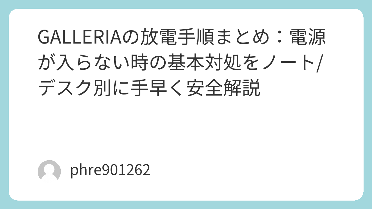電源ボタンを押しても反応しない、画面が真っ暗のまま、起動直後にフリーズする――そんなときに最初に試したいのが「放電(帯電リセット)」だ。GALLERIAは高性能ゆえに周辺機器や電源環境の影響も受けやすく、原因が大げさに見えても“残った電気”が悪さをしているだけのケースがある。まずは安全に、そして短時間で切り分けるための手順をまとめておく。