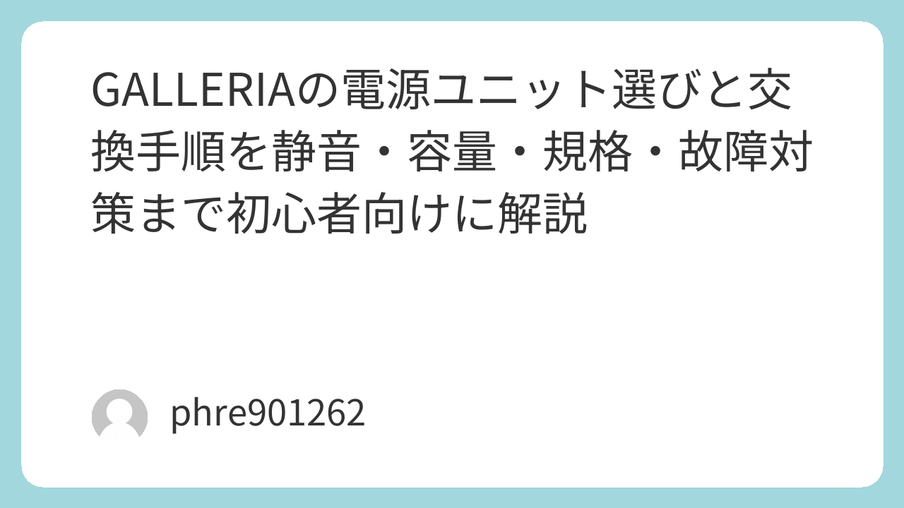 GALLERIAの「電源ユニット」を検索する瞬間って、だいたい心が落ち着かない。ゲーム中に急に落ちたり、起動が不安定になったり、GPUを替えたら電源が足りるのか不安になったり。私はこの手の悩みは“電源の選び方と、交換でやらかさない段取り”を押さえるだけで、一気に片が付くと感じている。