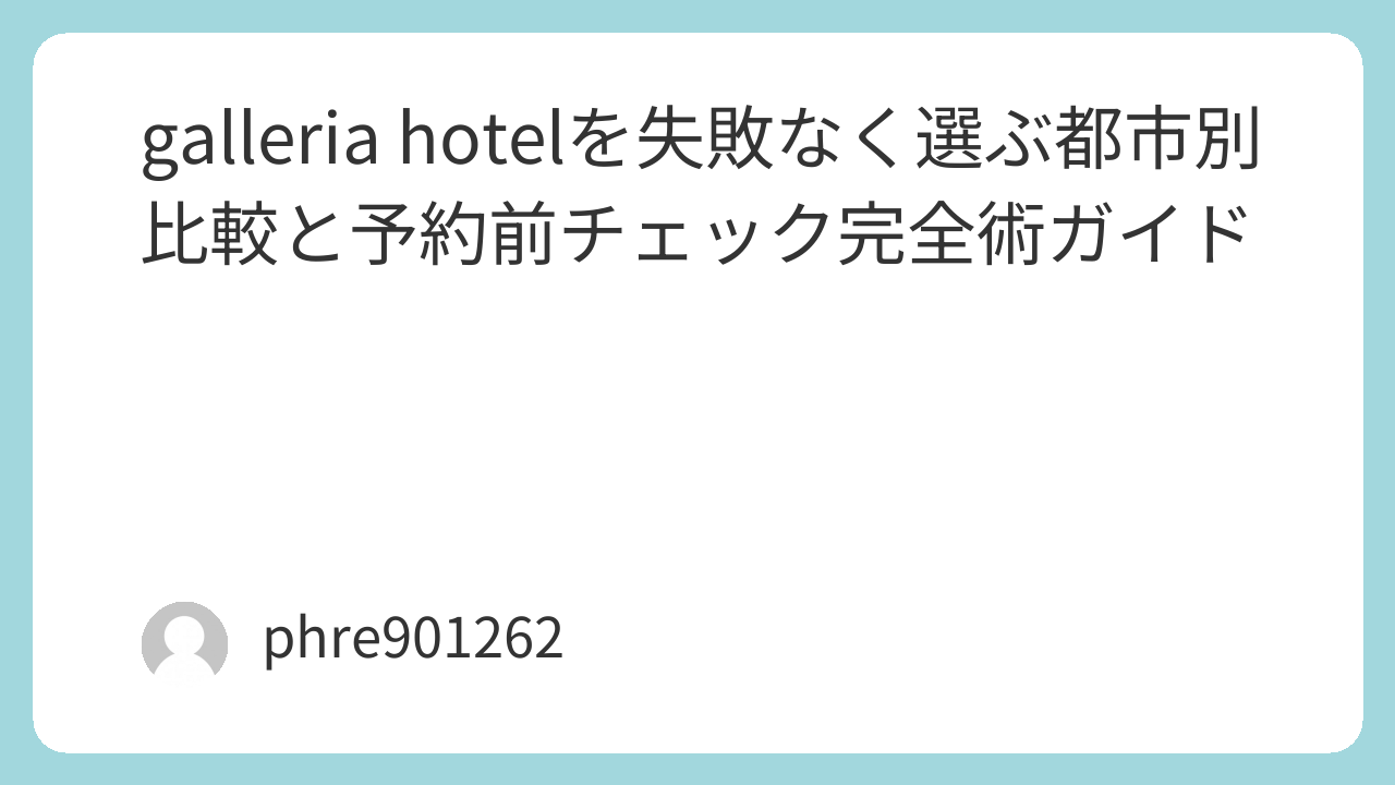 「galleria hotel」は、検索の入口としては便利だが、答えは“都市と動線”の中にある。地図で場所を確定し、目的に合う設備を拾い、持ち物で旅の負荷を落とせば、同じ予算でも体験が一段上がっていくはずだ。