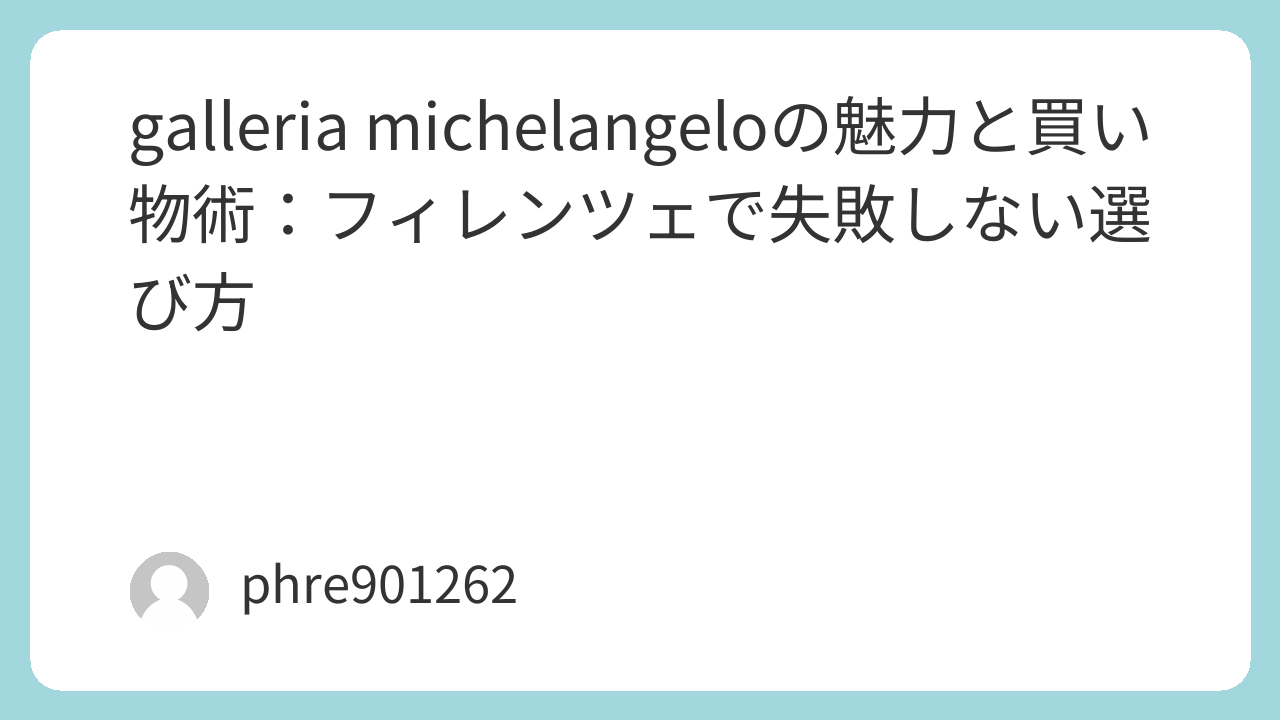結局のところ、「galleria michelangelo」で後悔しないコツは単純だ。フィレンツェで買うなら“帰国後の生活に溶けるか”を基準にし、ベルガモで観るなら“その場の感情を持ち帰る仕掛け”を用意する。目的が定まった瞬間、旅は軽くなる。あとは自分の好みを信じて選び切るだけでいい。