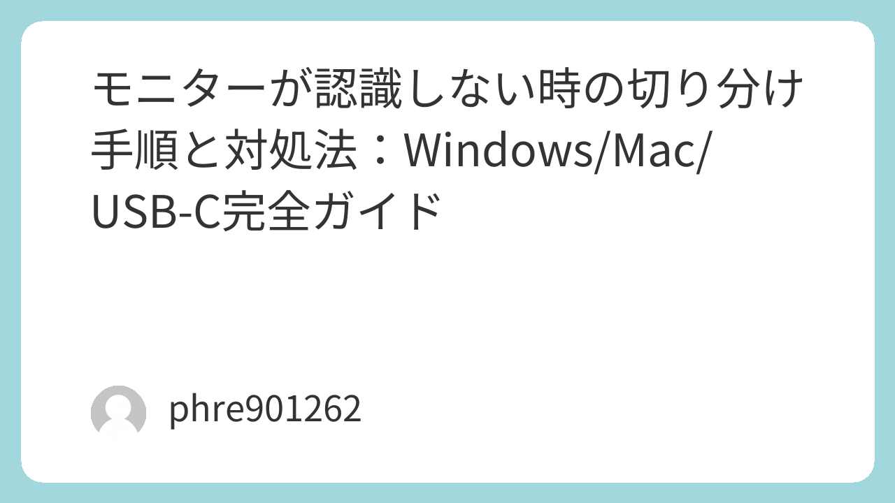 ここまでで直らなければ、原因はだいたい「ケーブル」「変換」「ハブ/ドック」か「OS設定/ドライバ」。