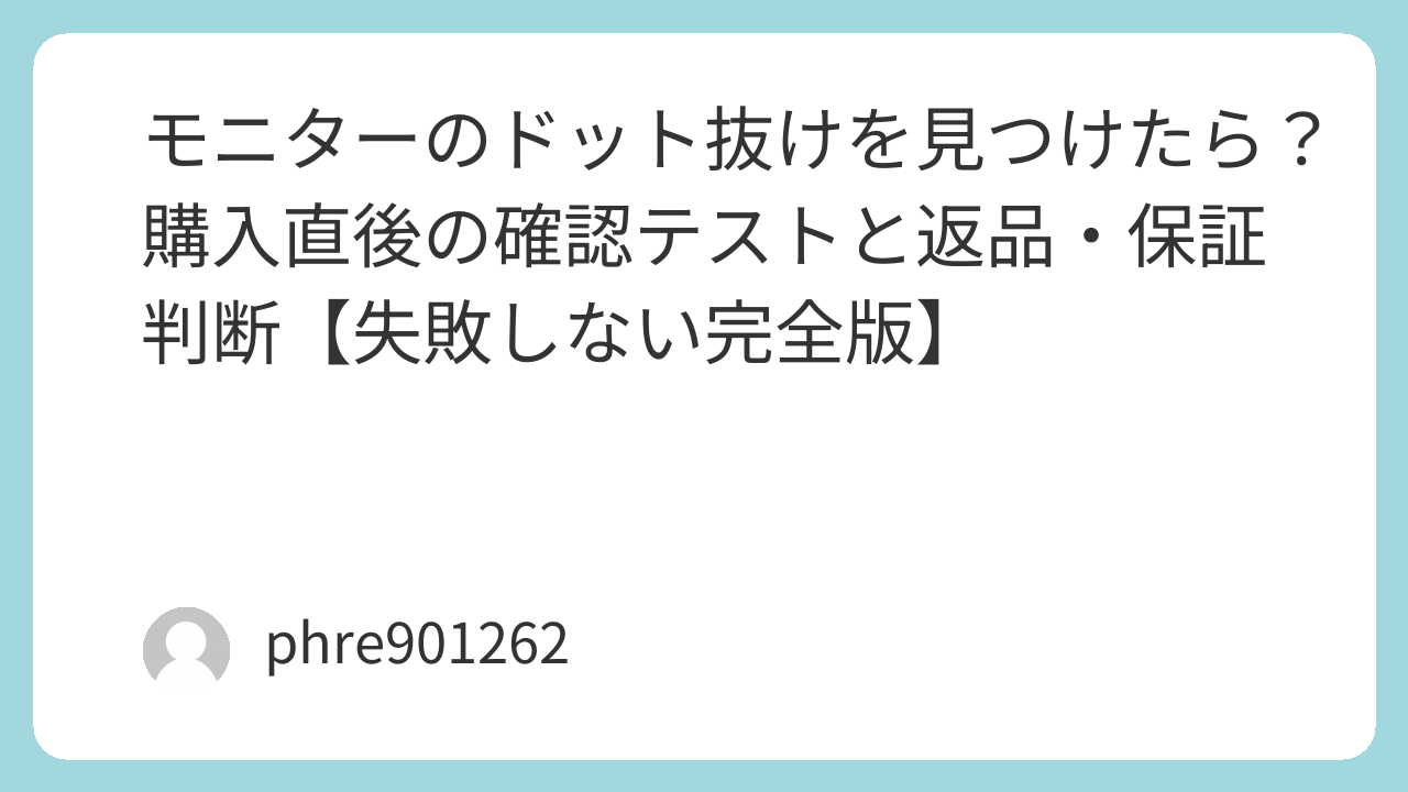 ドット抜けは、見つけた瞬間のショックが一番大きい。でも、手順で潰せば判断は意外と簡単です。掃除して、単色で確認して、ケーブルで切り分けて、期限内に動く。ここまでやれば、必要以上に悩まずに済みます。あなたのモニターが“当たり”か“交換案件”か、今日中に決着をつけましょう。