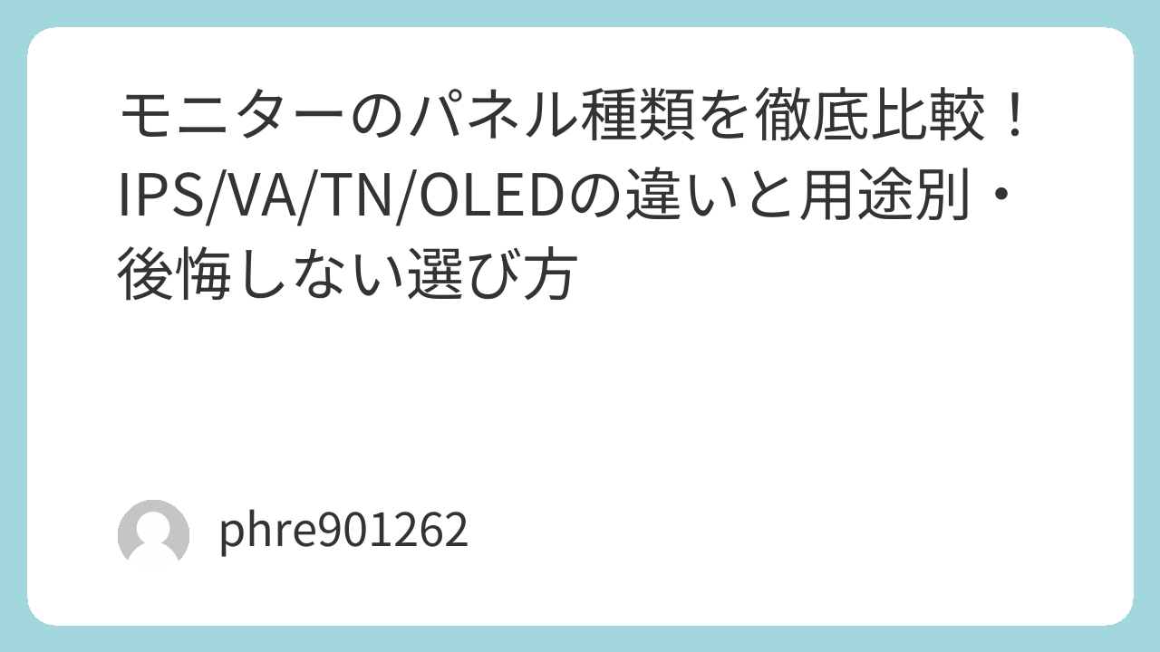 モニターのパネル種類を徹底比較!IPS/VA/TN/OLEDの違いと用途別・後悔しない選び方