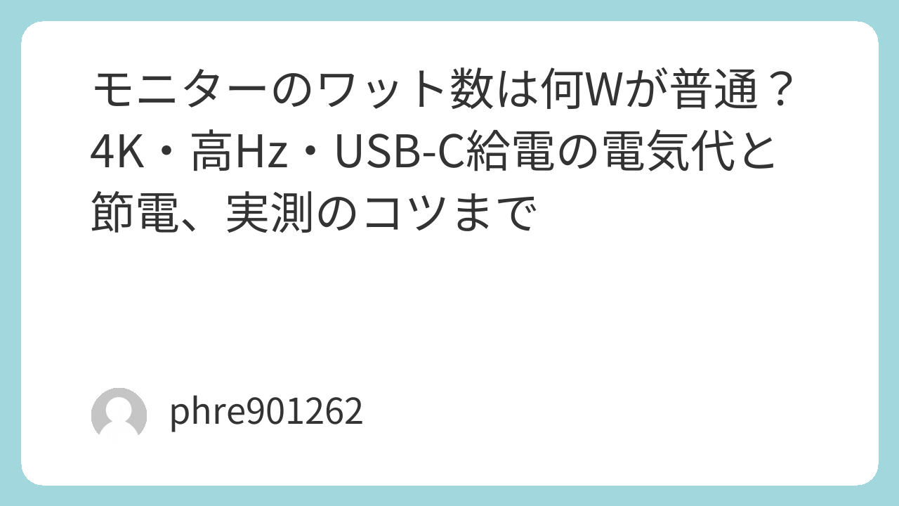 モニターのワット数は何Wが普通?4K・高Hz・USB-C給電の電気代と節電、実測のコツまで