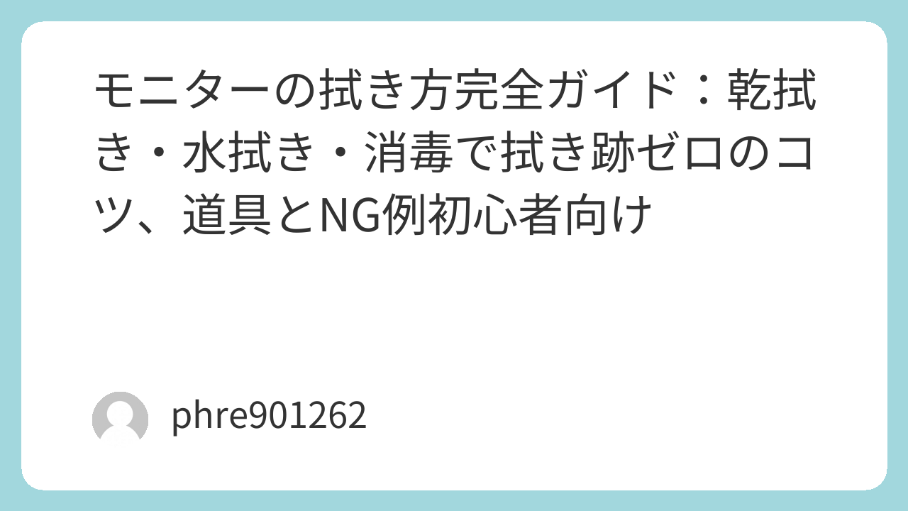モニターの拭き方は「乾拭き→必要なら湿拭き→すぐ乾拭き」。これがいちばん安全です。理由は単純で、画面のホコリを引きずらず、液体を残さないから。補足すると、拭き跡や細かい傷の多くは“最初の一手”で決まります。
