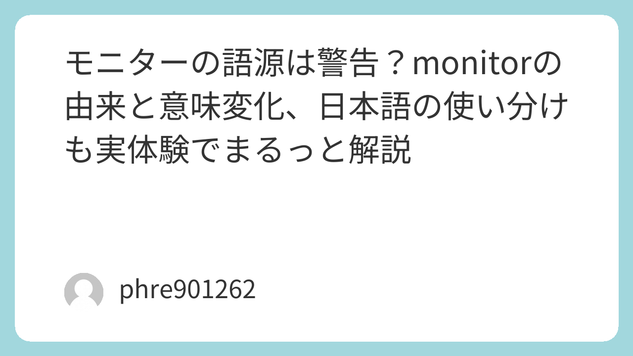 昔のmonitorは、先生役や監視役みたいに「見守る人」の意味で使われていた流れがある。人がやっていた“監視・確認”の仕事が、機械に置き換わっていった。その結果、映像を確認する装置や画面そのものがモニターと呼ばれるようになった、という筋道がしっくりくる。