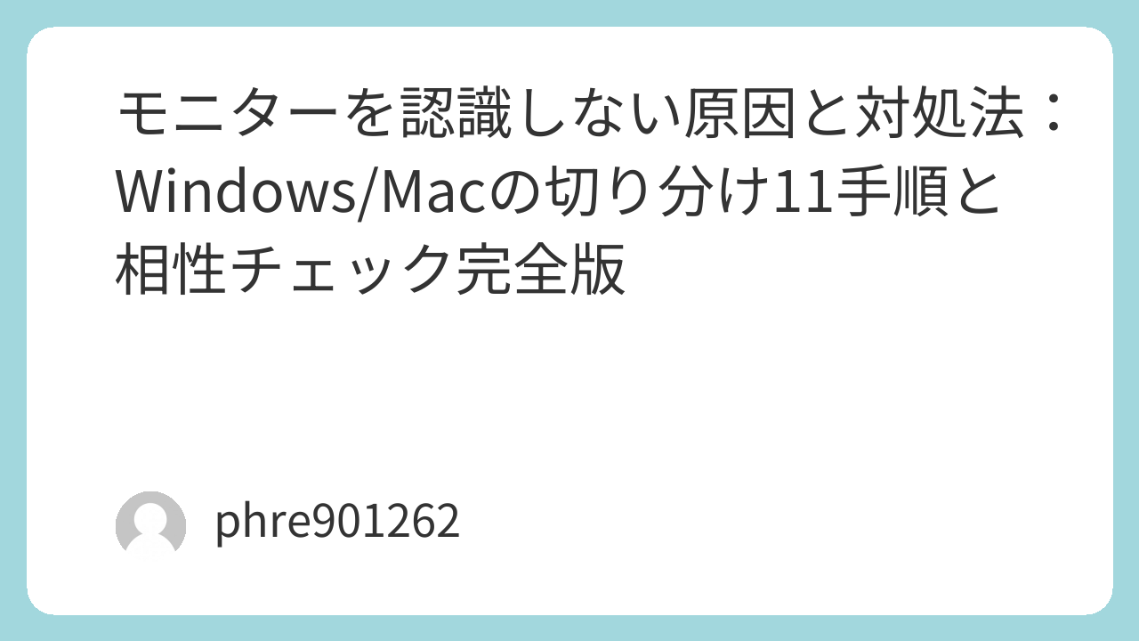 モニターを認識しない原因と対処法:Windows/Macの切り分け11手順と相性チェック完全版