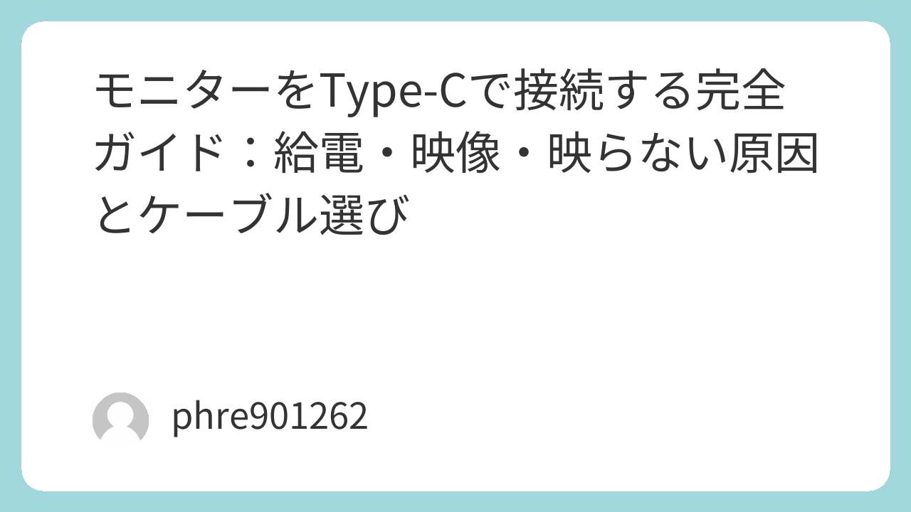 Type-Cモニターは便利だけど、うまくいくかどうかは「PC端子が映像出力に対応」「モニターのType-Cが映像入力」「ケーブルが映像対応」の三点セットで決まる。ここさえ押さえれば、配線が一気に減って、机の上が静かになる。