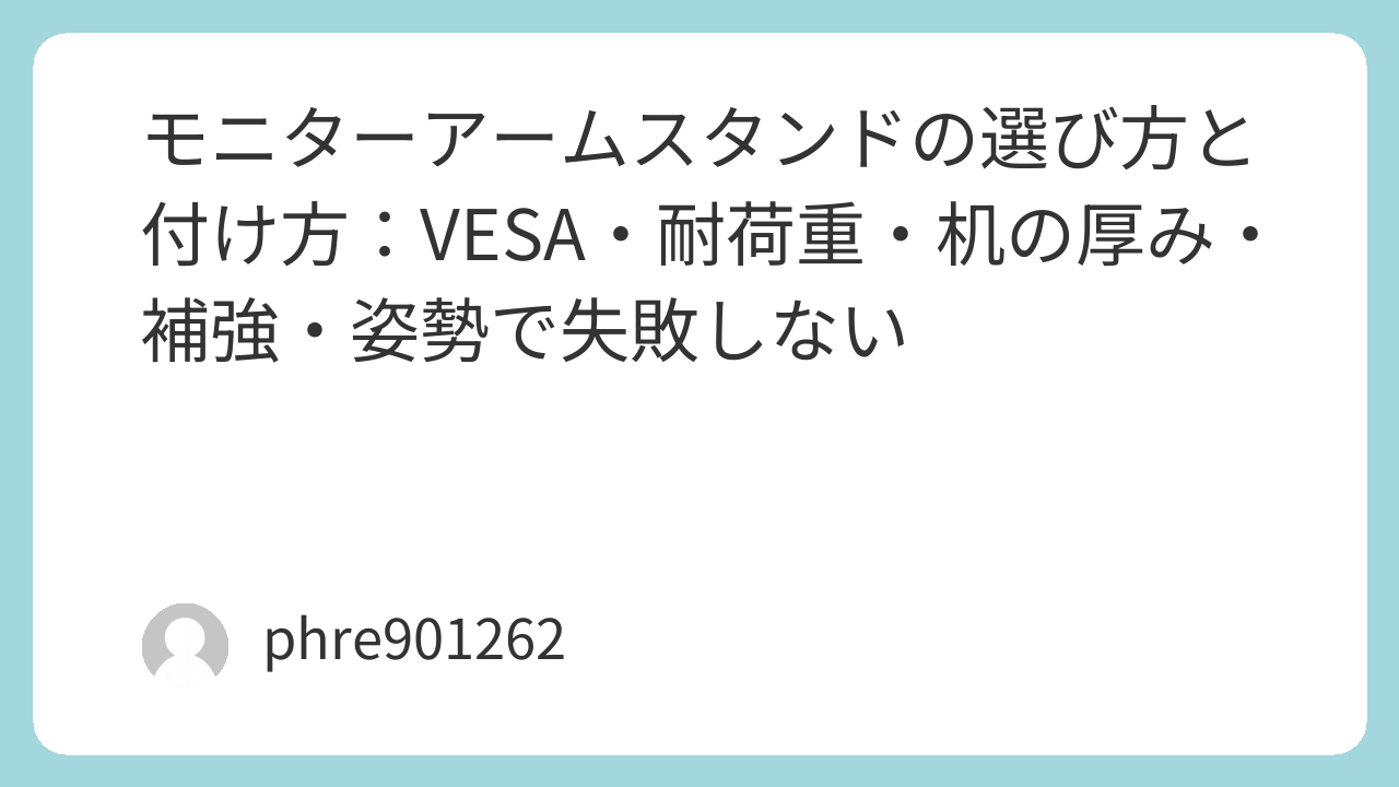 だからこそ、VESA、耐荷重、机の厚み。この3つを押さえて、必要なら補強プレートもセットで考える。迷ったら、まずは定番のHUANUOやAmazonベーシックで「自分の机でいけるか」を見極めるのが近道。そこを越えれば、アームは本当に便利な道具になる。