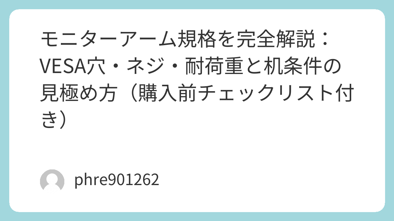 ここを押さえると、定番のエルゴトロン LX デスクマウント モニターアームやAmazonベーシック モニターアーム シングルみたいな“よく見る製品”も、安心して選べるようになります。
