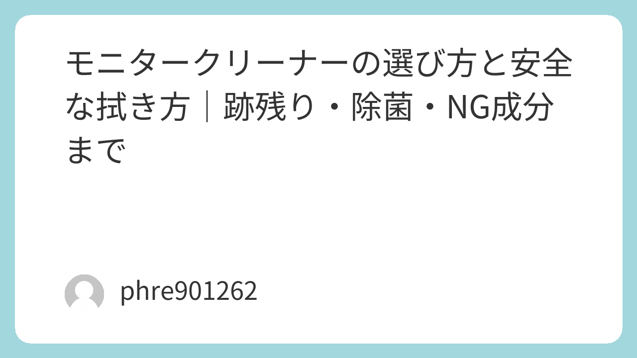 モニタークリーナーの選び方と安全な拭き方|跡残り・除菌・NG成分まで
