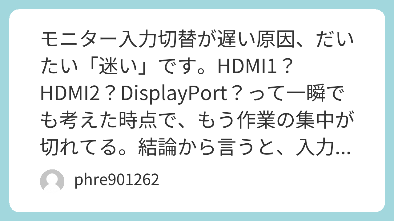 入力切替の速さって、モニターの性能より、普段の決め事で決まります。