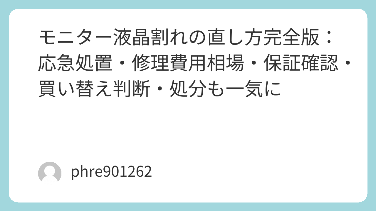 やってしまった。モニターの画面に細いヒビが走った瞬間、頭の中が真っ白になる。自分も一度、机の上でケーブルを引っ掛けてモニターを軽く倒し、画面に“ピキッ”と線が入ったことがある。最初は「これ、拭けば消える?」と現実逃避したくなるんだけど、液晶割れは基本的に“直す”というより「安全確保して、修理か買い替えを決める」話だ。ここを間違えると、ケガも出費も増えやすい。順番だけ守れば、最短で着地点が見えてくる。