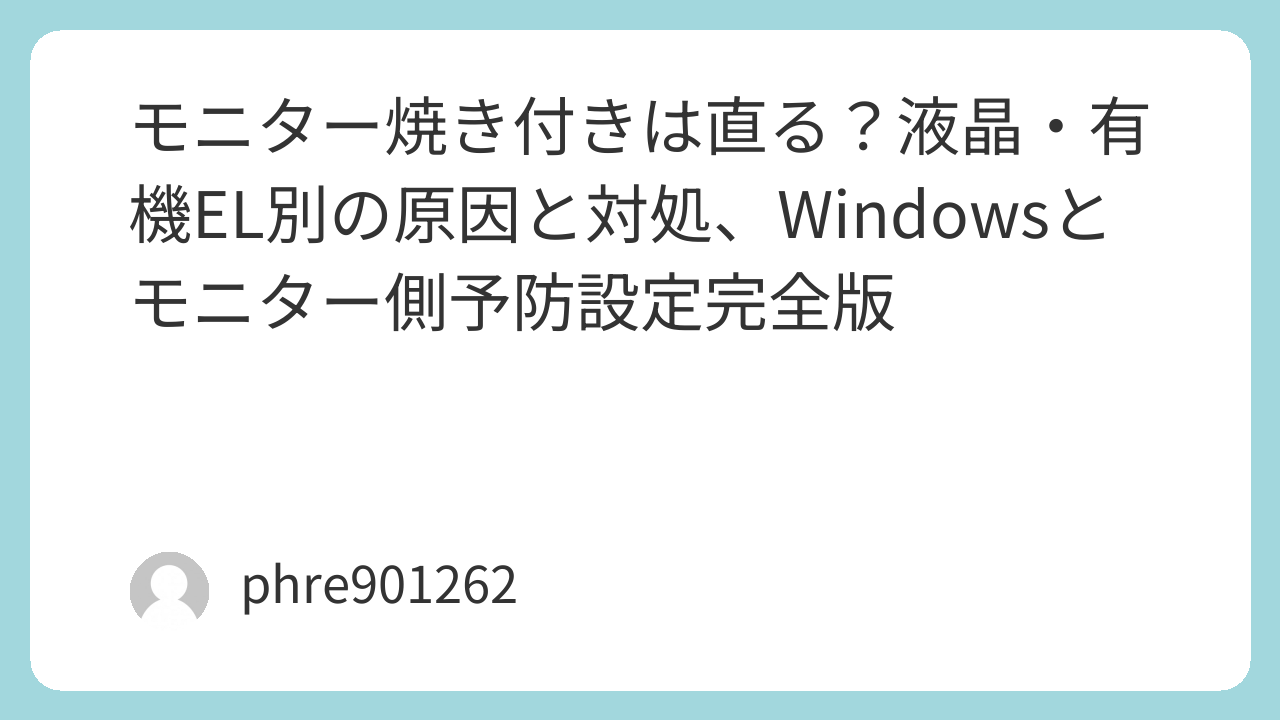 朝イチでPCを起動したら、昨日の作業画面がうっすら残っている。タスクバーの帯が消えない。こういうとき、多くの人が「焼き付きだ…終わった…」となるんだけど、実際は“焼き付き”と“残像(画像保持)”がごちゃ混ぜで語られてることが多い。まずここを分けるだけで、焦りが一段落する。