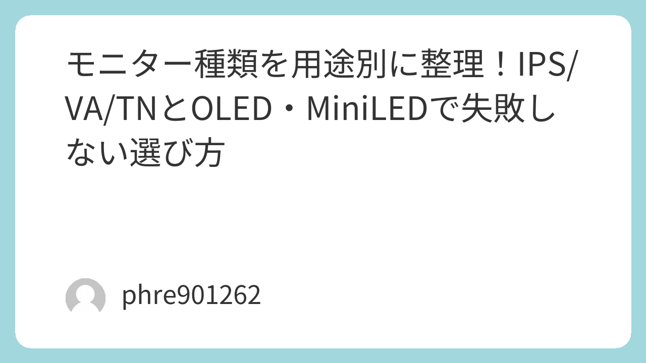 結論はこれ。モニターの種類は、スペック表を読むためじゃなく、買ったあとに困らないためにある。用途を決める、妥協点を先に書く、最後に端子を確認する。この順で選べば、IPSでもVAでもOLEDでも、ちゃんと満足できる買い物になる。