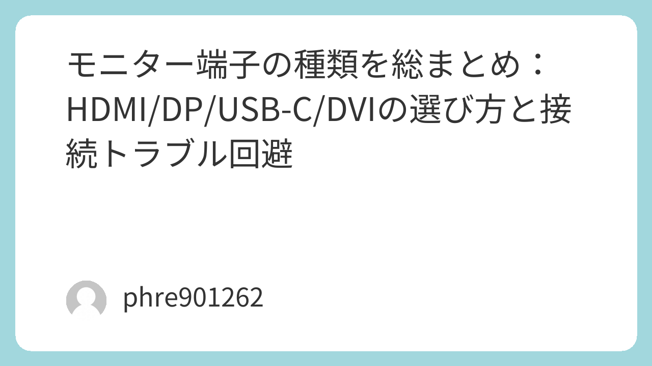 モニター端子の種類を総まとめ:HDMI/DP/USB-C/DVIの選び方と接続トラブル回避
