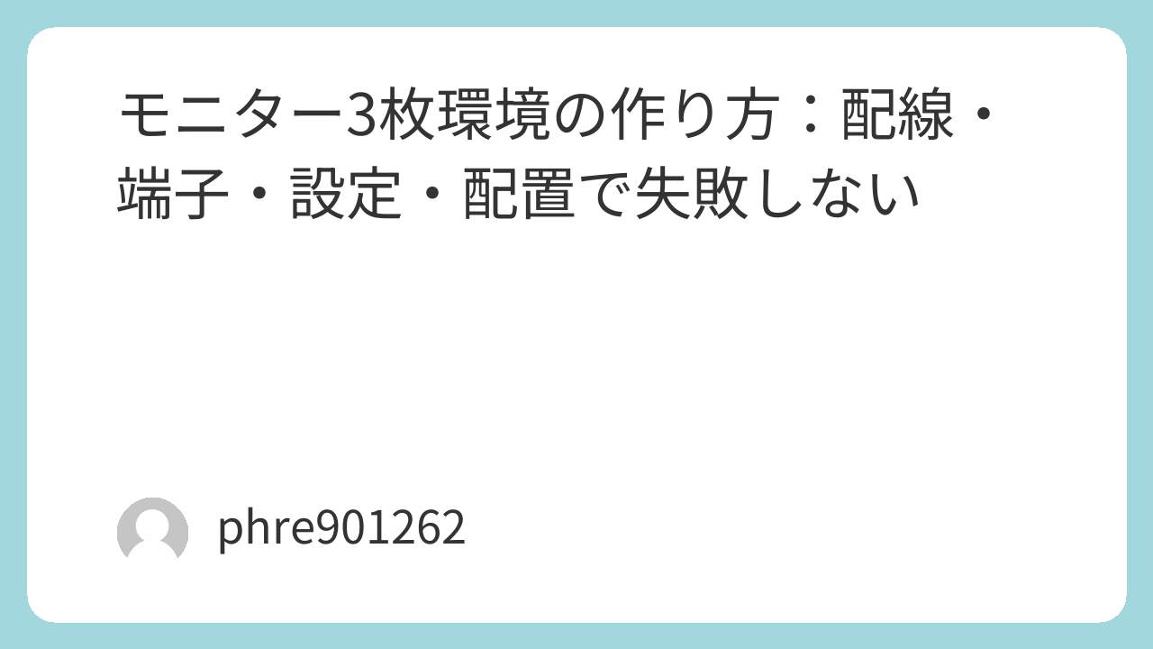モニター3枚は、正しく組めば「机の上が仕事場に変わる」感覚がある。逆に、出力台数の見落としや、配置の雑さでしんどくなることも多い。まずは“出せるか”を確認して、直挿しで安定させ、最後にアームで位置を詰める。ここまでやると、3枚の良さがちゃんと残る。