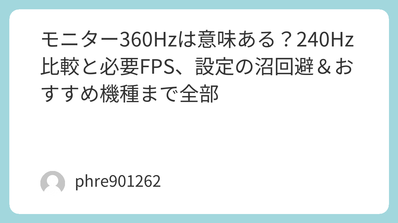 断定するけど、360Hzはfpsが出ないと価値が激減する。理由は表示更新が360回でも、ゲーム側が200fpsなら200回分の情報しか来ないから。補足すると、常に360fps固定じゃなくてもいい。平均が高くて、撃ち合いの瞬間に落ちにくい構成なら体感は残る。