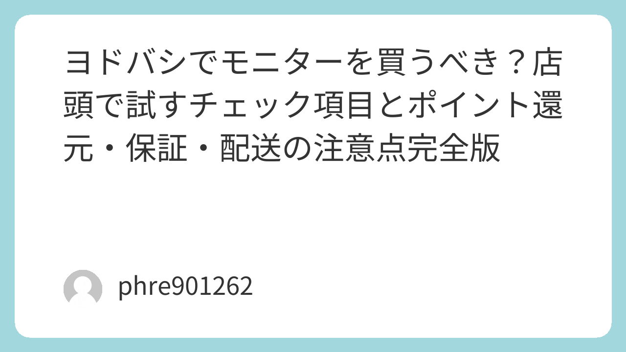 私は、まずヨドバシで見て触って、候補を2台に絞る。そこから「支払い方法のポイント」「延長保証を付けるか」「搬入や設置の不安」を整理して、その場で買うか、家に帰ってヨドバシ.comや他店も含めて条件を比較する。急がない買い物ほど、この手順が効く。モニターは毎日見るものだから、選ぶ時間はわりとすぐ回収できる。