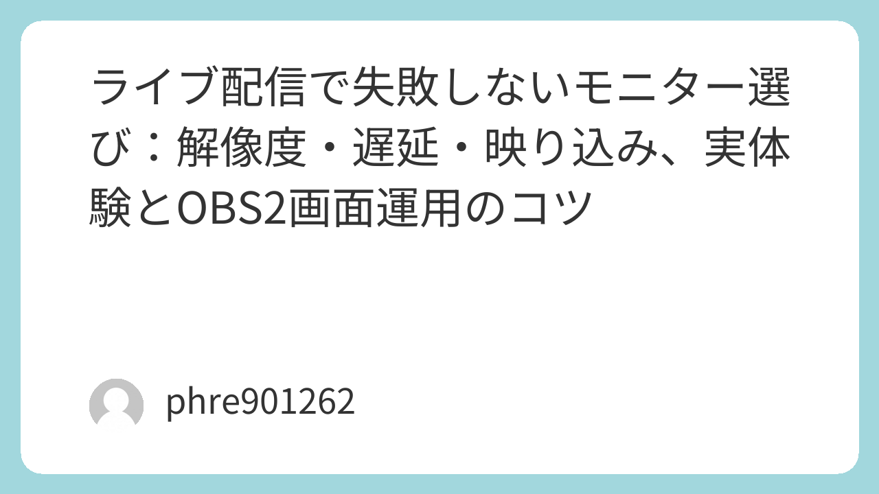 配信が重いときの切り分けも、モニター選びの延長で考えると楽になります。僕が一番最初に疑うのは、プレビュー表示の負荷と解像度設定。プレビューを高負荷のまま常時表示してるだけで、妙に重く感じることがある。そこで「プレビューは別画面にして必要なときだけ確認」「配信解像度とゲーム解像度を整理」みたいに順番に潰していく。ここで大事なのは、モニターを疑う前に“運用”を疑うこと。逆に言うと、運用を整えた上で「やっぱり表示がしんどい」となったら、買い替えが気持ちよくハマります。