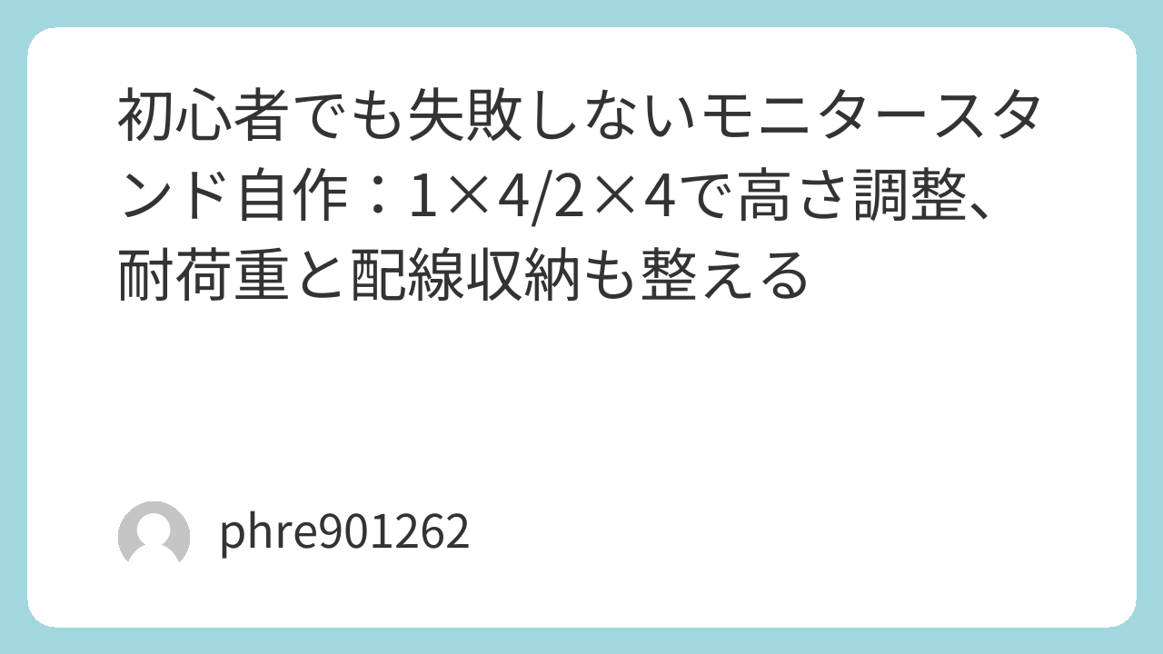初心者でも失敗しないモニタースタンド自作:1×4/2×4で高さ調整、耐荷重と配線収納も整える