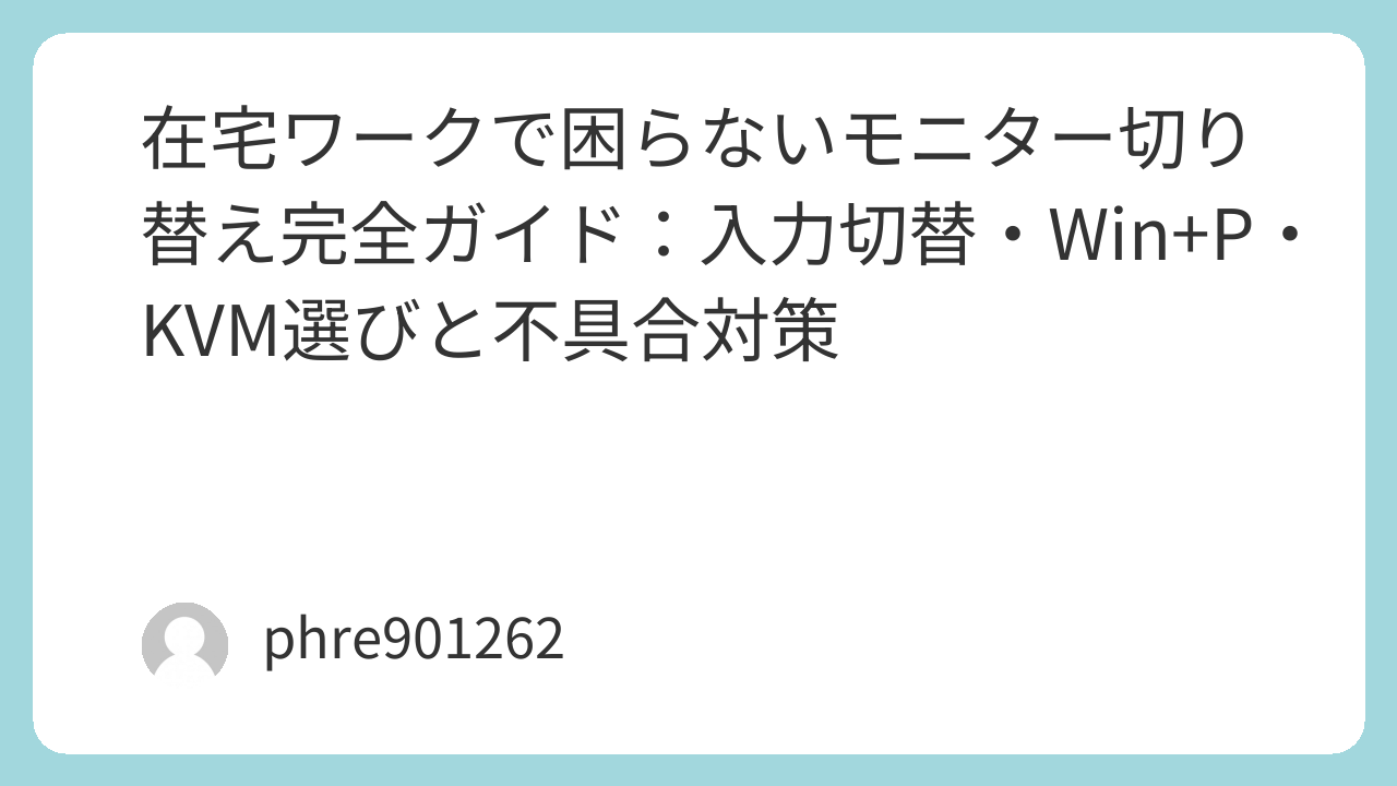 在宅ワークで困らないモニター切り替え完全ガイド:入力切替・Win+P・KVM選びと不具合対策
