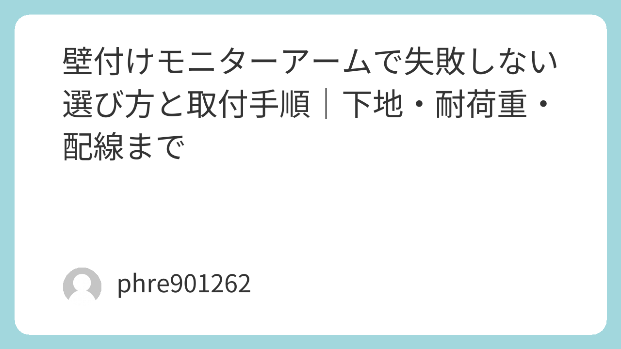 壁付けのモニターアームって、机が広くなるし見た目もすっきりする。だけど一度やらかすと怖い。いちばん痛いのは「固定が甘くてグラつく」「画面がじわじわ下がる」「配線が突っ張って端子が逝く」この3つ。結論から言うと、壁付けは“アーム選び”より先に、壁と下地の確認で9割決まる。ここを押さえれば、あとは淡々と作業するだけで仕上がる。
